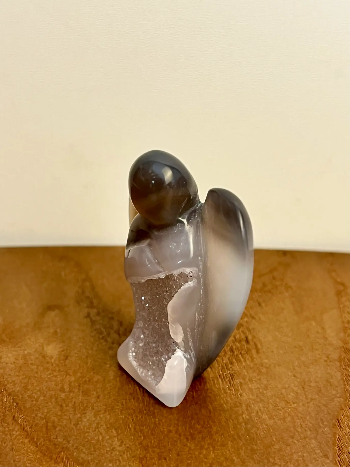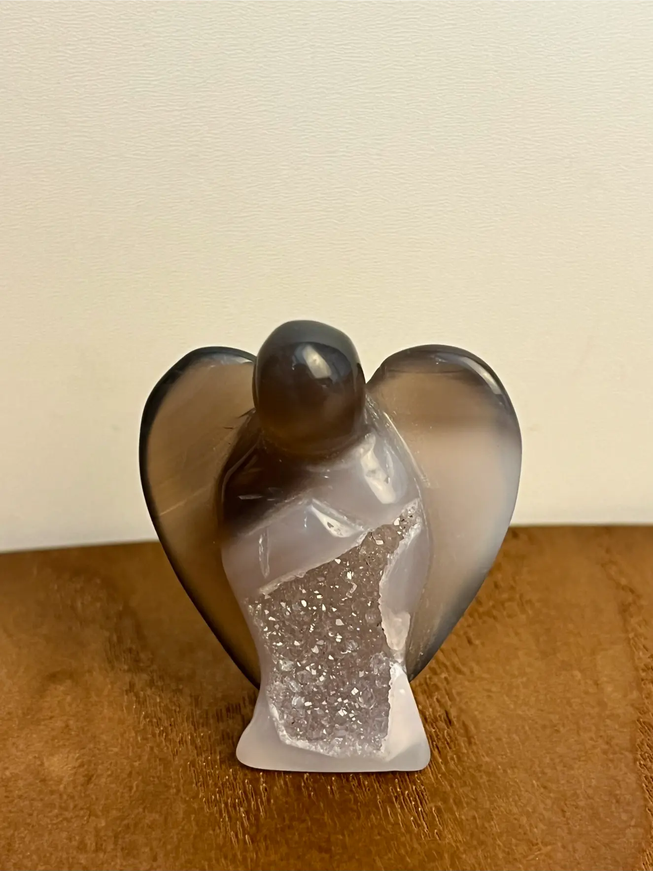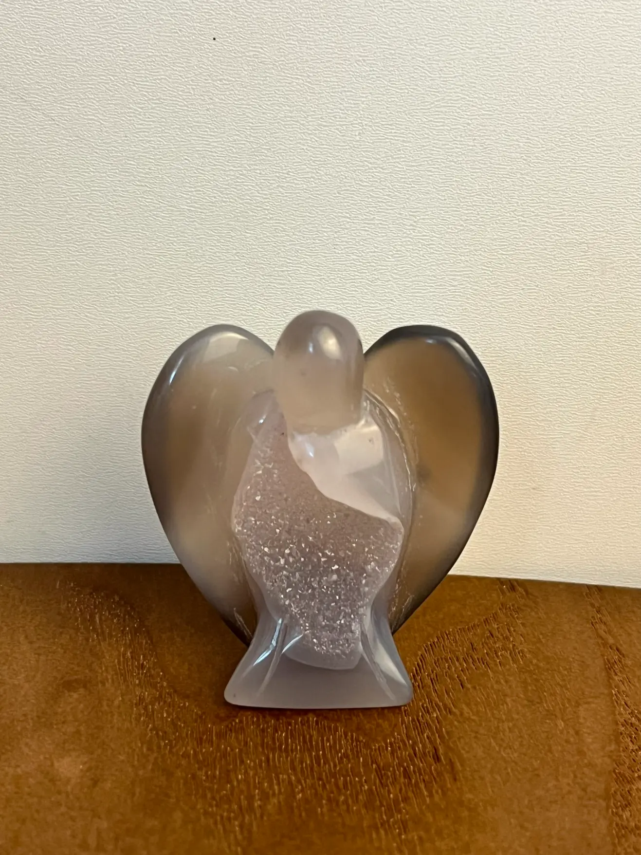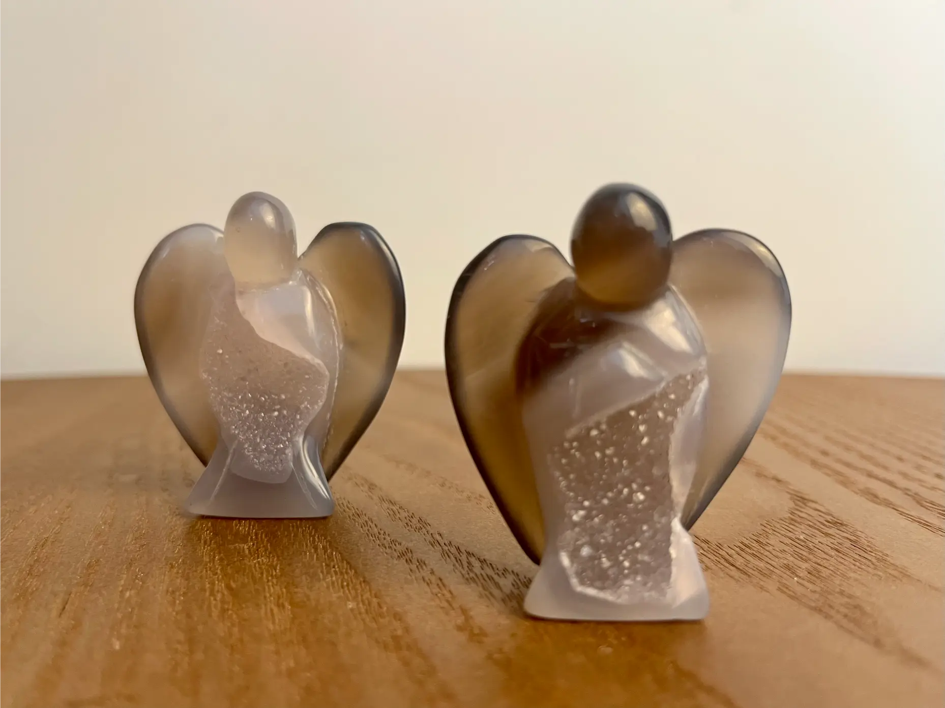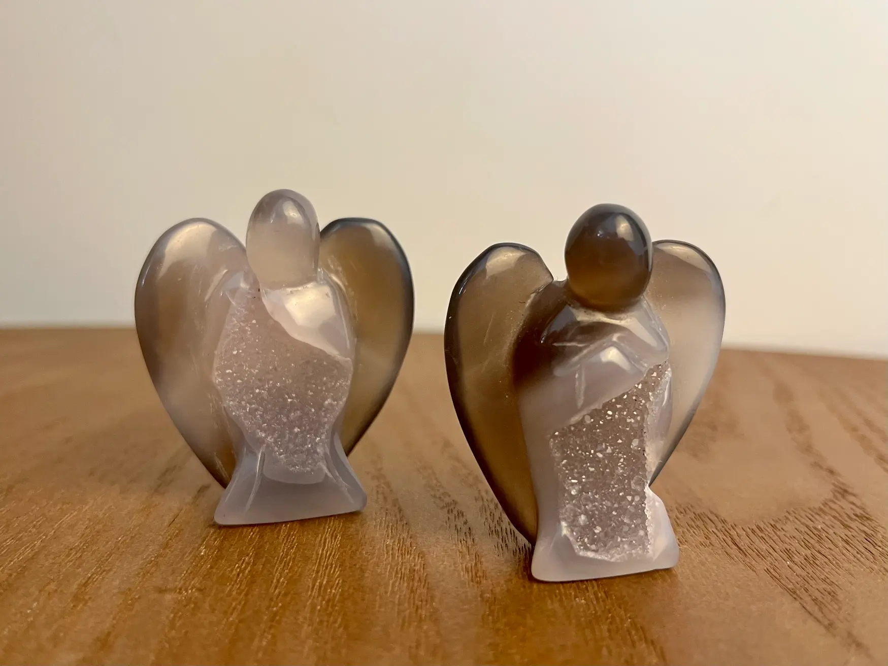 Deze Agaat druzy engeltjes zijn kleine, bijzondere verschijningen vol zachtheid en energie. Elk engeltje is gesneden uit agaat en heeft in het hart een prachtige glinsterende druzy. Een natuurlijke kristalvorming die het licht op magische wijze vangt.