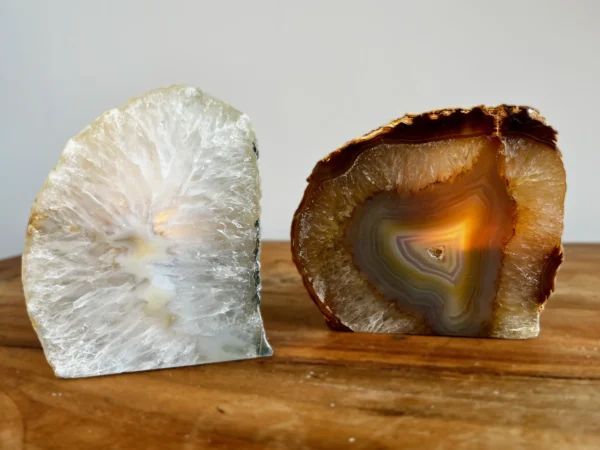 Deze agaat theelichten zijn gemaakt van echte, natuurlijk gevormde agaat. Een edelsteen die bekend staat om haar rustgevende energie en prachtige kleurstructuren. Zodra je er een kaarsje in plaatst, gebeurt er iets bijzonders: