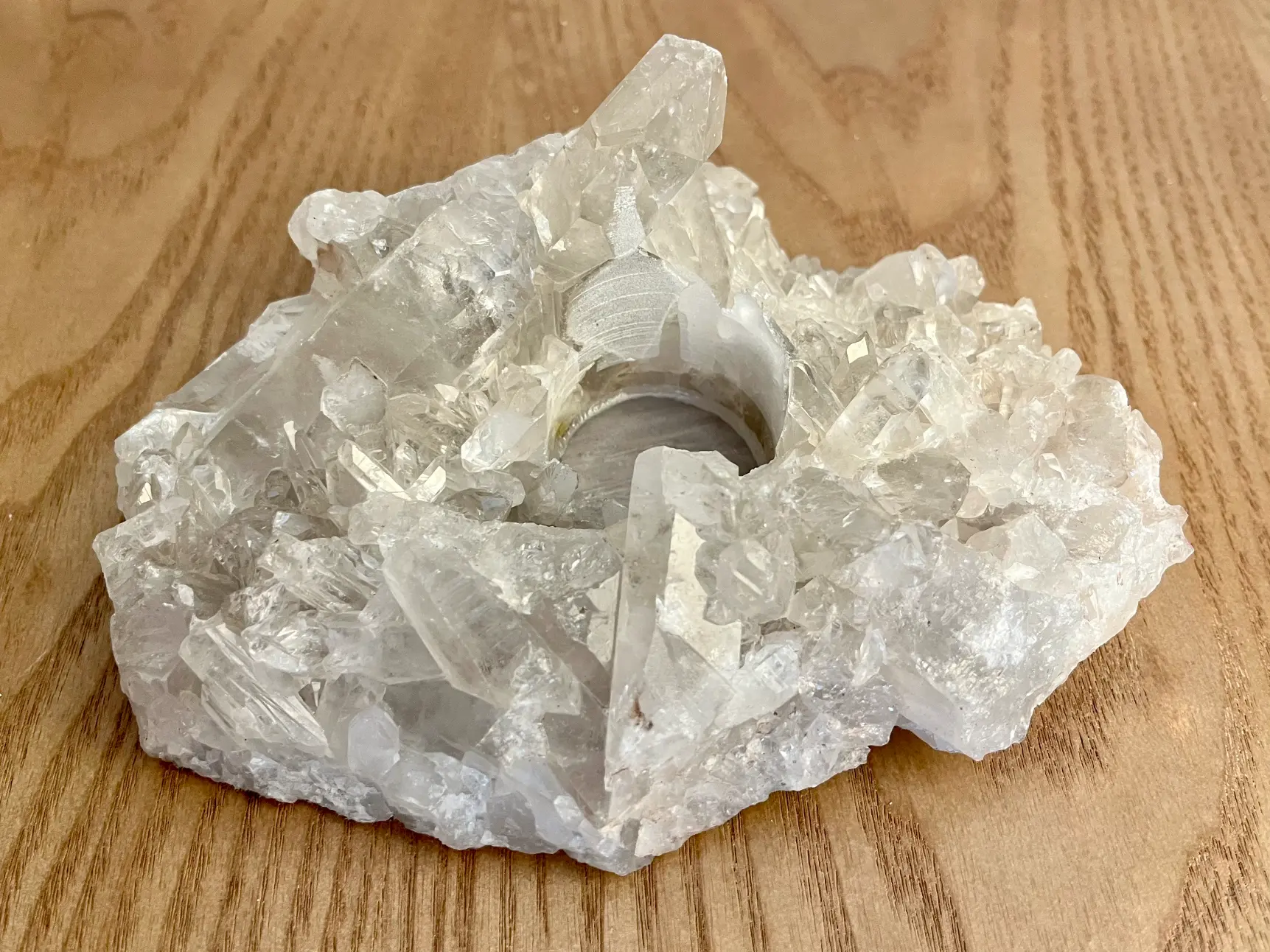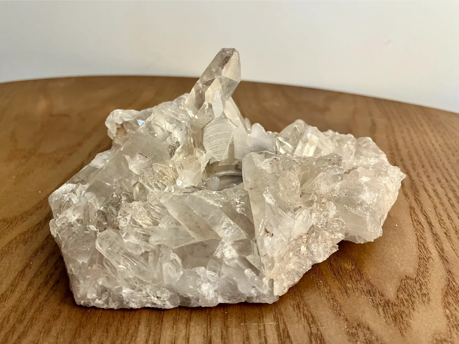 Dit Bergkristal cluster theelicht is zonder twijfel een van de meest bijzondere stukken die je in huis kunt halen. De ruwe kristalpunten groeien in alle richtingen en vangen het licht van een theelichtje op een magische manier. Zodra je een kaarsje aansteekt, begint de hele cluster te sprankelen.